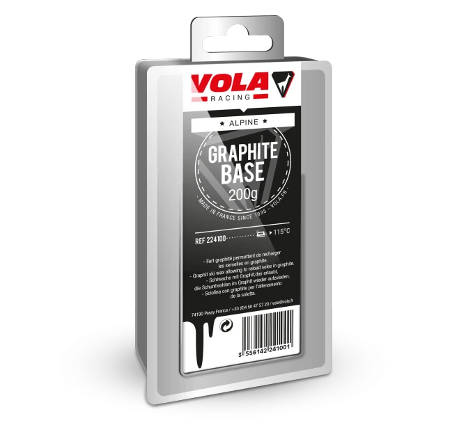 The Vola Graphite STD 200g race wax is highly reliable in the race industry. Vola has been making ski race wax in France since 1935 and produces some of the best training wax in the industry. This wax works very well for dirty snow conditions. To apply simply dry and clean your ski base, apply the wax with a waxing iron, let it dry for at least 2 hours, scrape with a plastic scraper, scrape with a nylon brush and finish with a horsehair brush.
