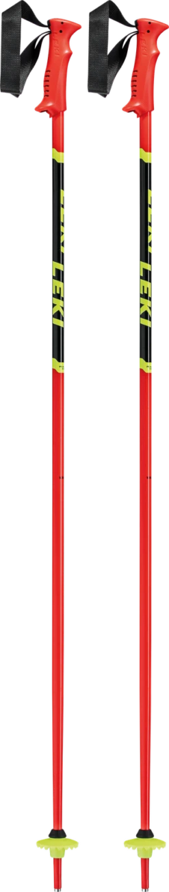 The Leki Racing Kids ski poles are a must-have for little kids with big dreams. These kids ski poles are budget friendly and are specifically developed for kids with a compact grip and smaller strap. They include PA Safety Hard grip with easily adjusting strap and a safety release. The aluminum TS shaft is sturdy and durable and the steel tip allows for precise poles planting and optimal grip in all terrain.